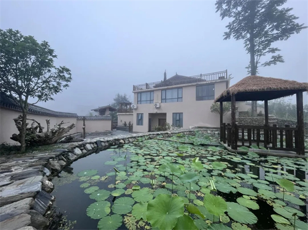 依山而建,筑于高處,坐北觀南,擁有極佳的自然景觀,屋后環(huán)繞潺潺溪澗從山頂流下,這里入眼處處是風(fēng)景,耳畔陣陣是樂章。