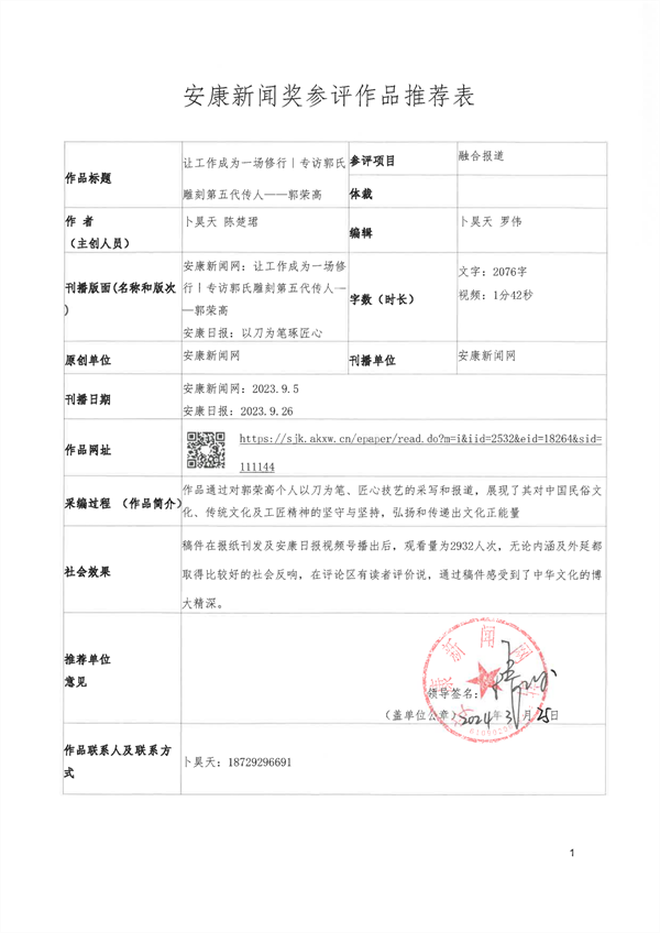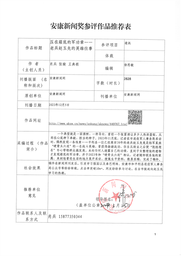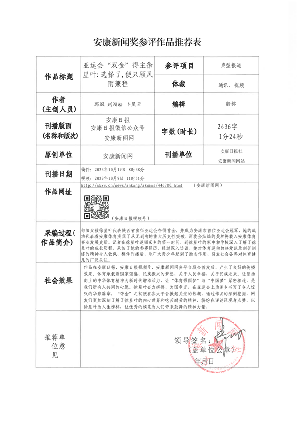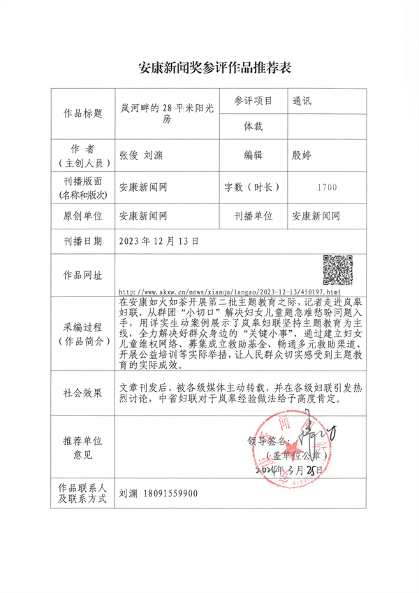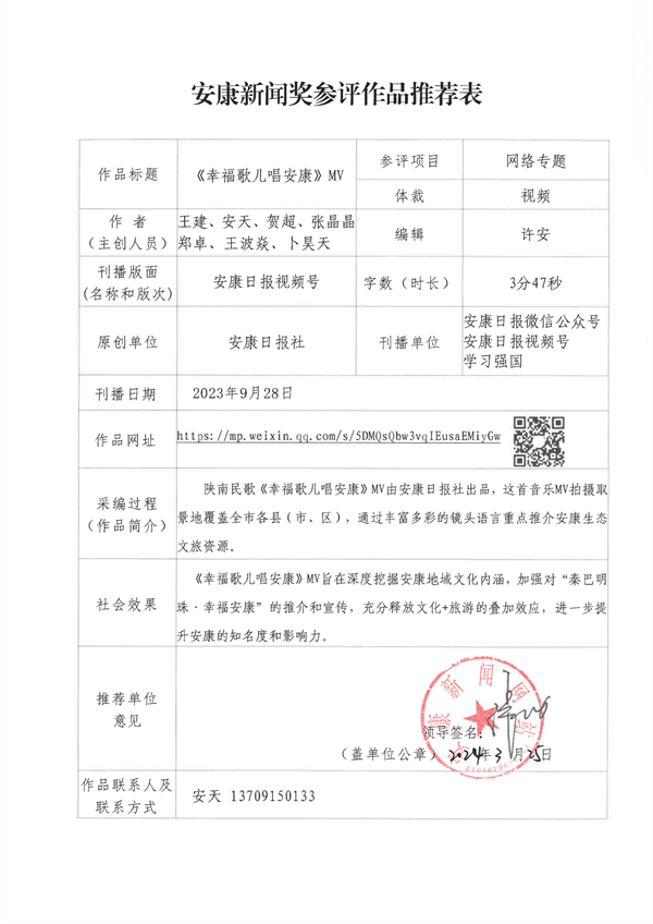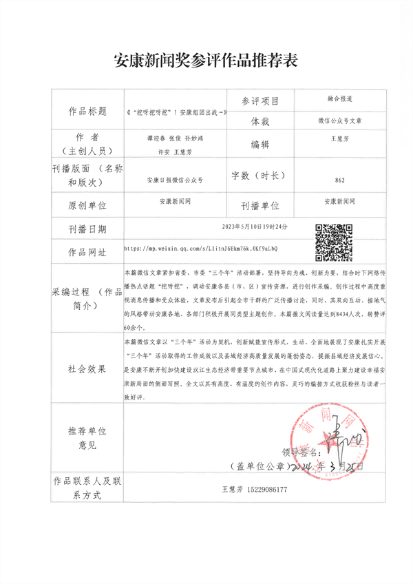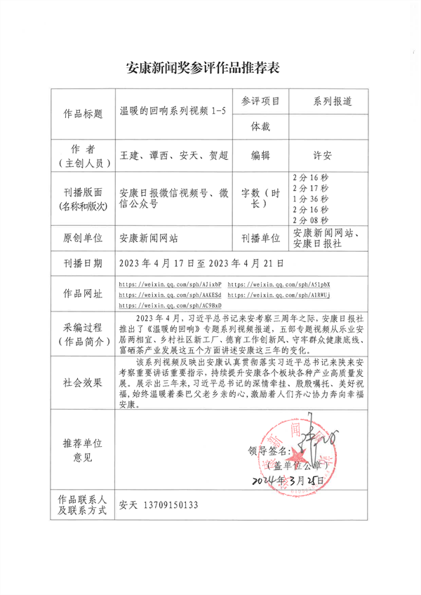 經(jīng)過(guò)編委會(huì)推薦、社黨委研究決定,擬推薦以下13件新聞作品參評(píng)2023年度“安康新聞獎(jiǎng)”。公示時(shí)間從2024年3月25日至2024年3月29日,公示期為5個(gè)工作日。如有不同意見,請(qǐng)向安康日?qǐng)?bào)社機(jī)關(guān)紀(jì)委、新聞管理部反映。nyB安康新聞網(wǎng)