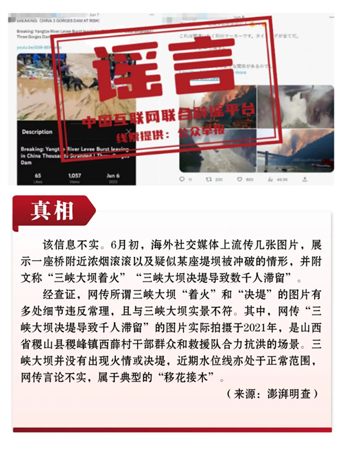 謠言5:三峽大壩“著火”“決堤”?