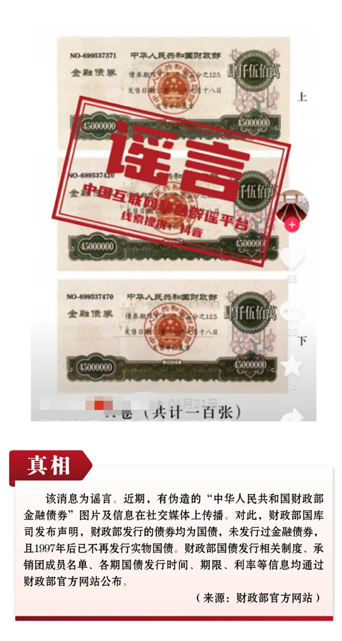 謠言3:財政部發(fā)行金融債券?