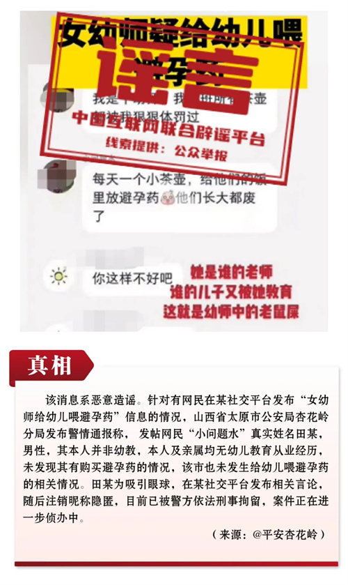 謠言8:山西一女幼師給幼兒喂避孕藥?