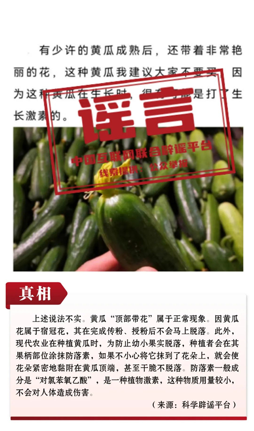 謠言10:黃瓜頂部帶花是因為打了激素,不能吃?