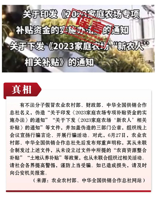 謠言1:三部門聯(lián)合發(fā)文將發(fā)放家庭農(nóng)場等專項涉農(nóng)補貼?