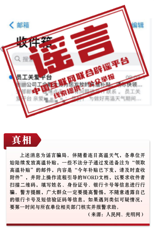 謠言10:掃描二維碼領(lǐng)取“高溫補(bǔ)貼”?