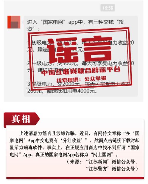 謠言1:在“國(guó)家電網(wǎng)”App中交電費(fèi)有分紅收益?
