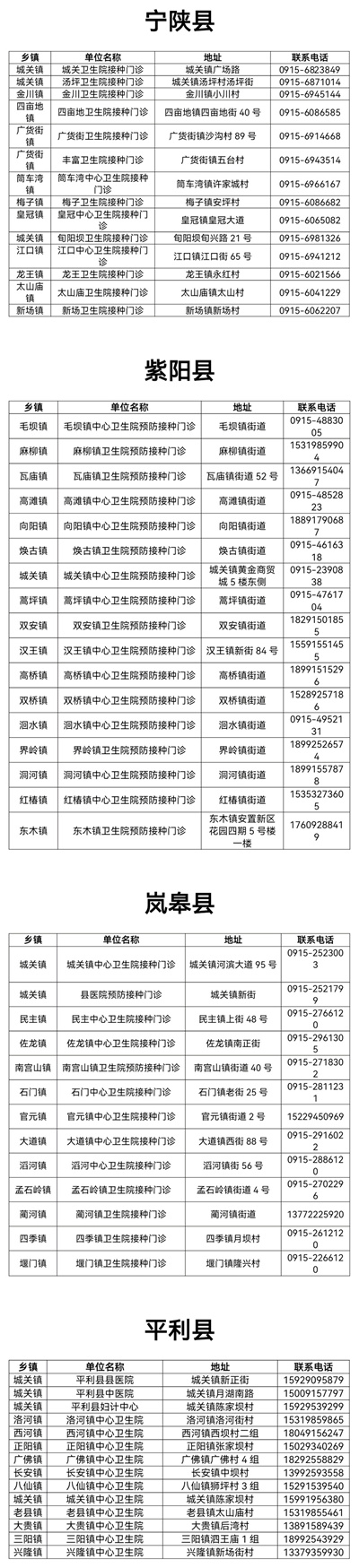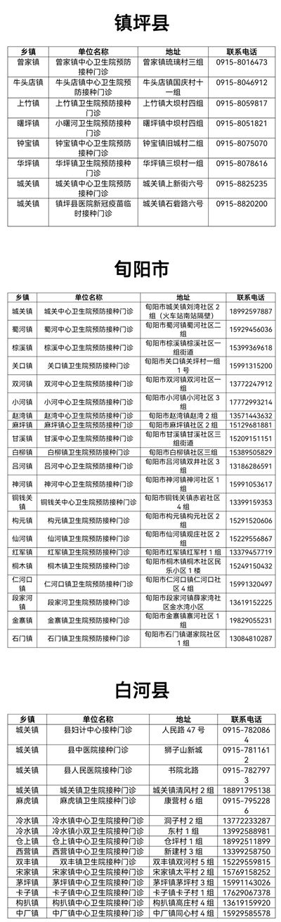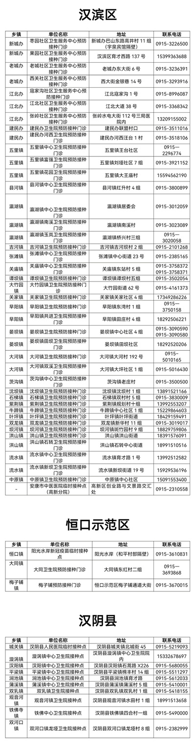 答:目前安康各鄉(xiāng)鎮(zhèn)、社區(qū)預(yù)防接種門診均可接種新冠疫苗,具體接種點(diǎn)位附后。