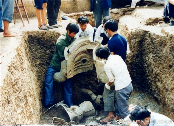 1986年8月16日,三星堆二號(hào)祭祀坑被發(fā)現(xiàn)。圖據(jù)三星堆博物館