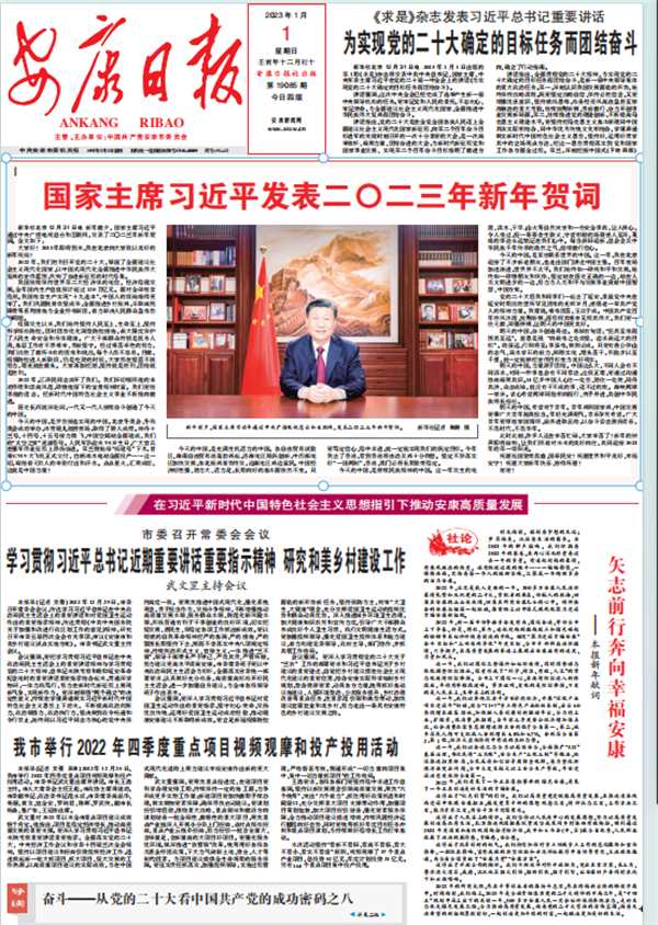 (2023年1月1日安康日報01版社論《矢志前行奔向幸福安康——新年獻詞》)