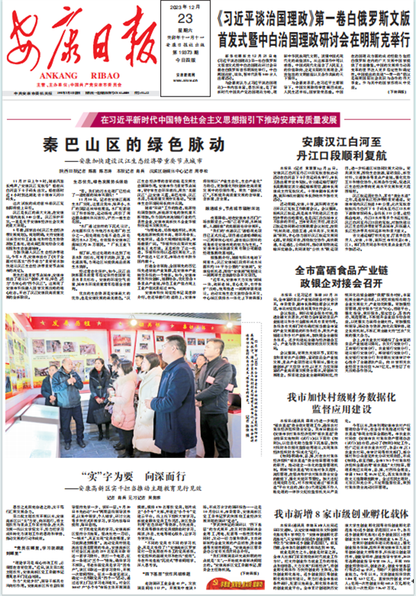 (2023年12月23日安康日報01版陜西日報、安康日報、縣級融媒體中心記者三級聯(lián)動《秦巴山區(qū)的綠色脈動——安康加快建設(shè)漢江生態(tài)經(jīng)濟帶重要節(jié)點城市》)