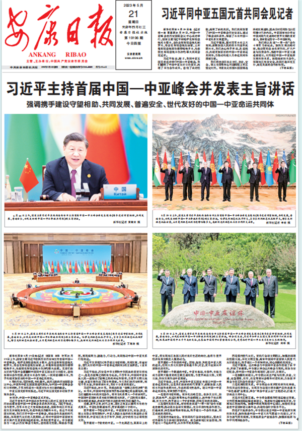 (2023年5月21日安康日報01版《習近平主持首屆中國——中亞峰會并發(fā)表主旨講話》)