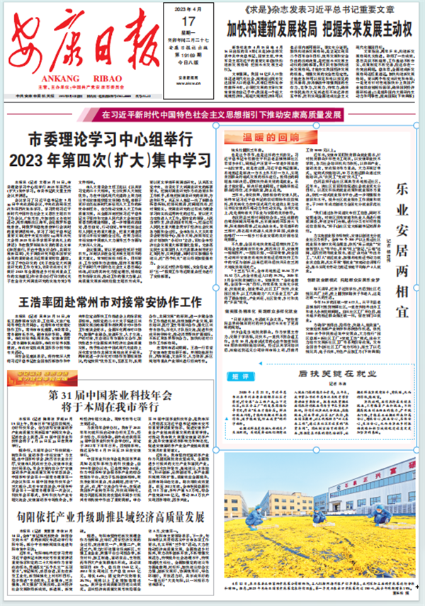 (2023年4月17日安康日報01版開設(shè)“在習近平新時代中國特色社會主義思想指引下推動安康高質(zhì)量發(fā)展”“溫暖的回響”欄目)