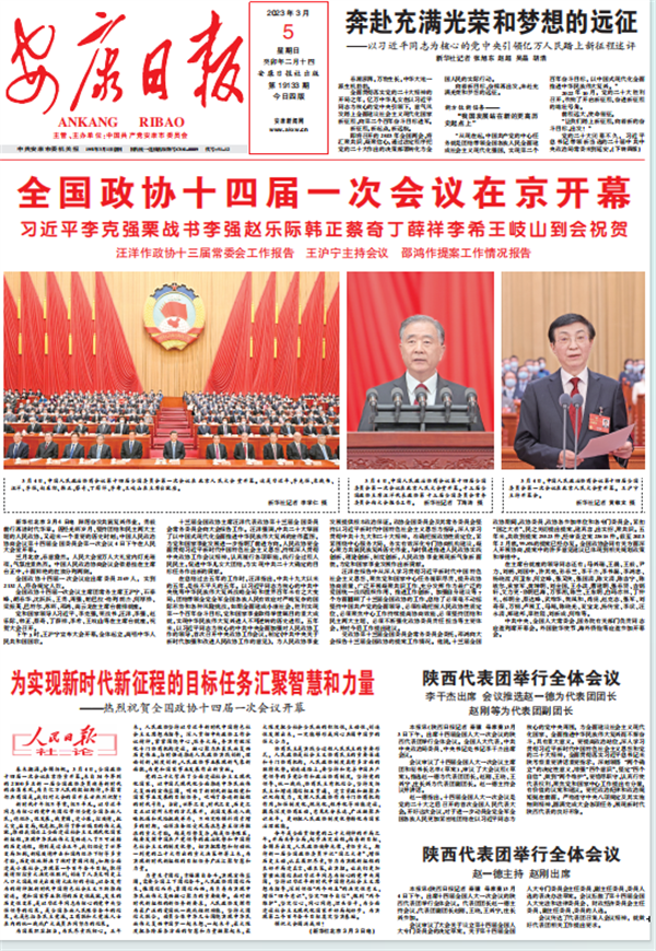 (2023年3月5日安康日報01版《全國政協(xié)十四屆一次會議在京開幕》)