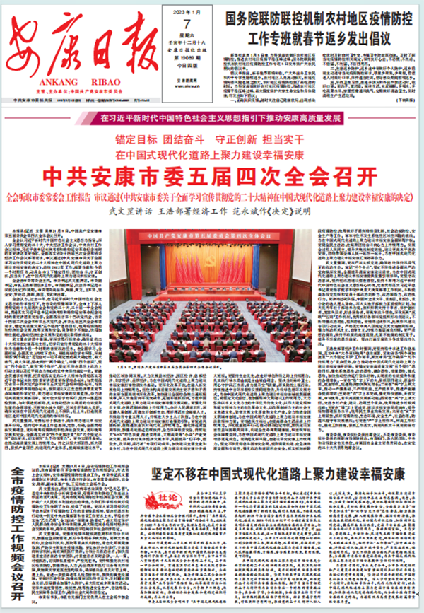(2023年1月7日安康日報01版《中共安康市委五屆四次全會召開》)