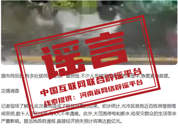 真相:近日,有網(wǎng)民散布消息稱,“信陽市光山縣狂風暴雨致多人死亡”。經(jīng)光山縣應急管理局核實,無人因災傷亡,相關信息均為謠言。請廣大網(wǎng)民不要輕信或隨意轉發(fā)來源不明、未經(jīng)證實的信息,共同營造清朗網(wǎng)絡環(huán)境。(來源:河南省網(wǎng)絡辟謠平臺)