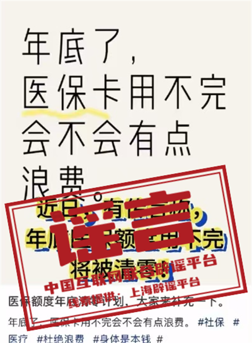 真相:臨近年底,社交平臺上關(guān)于“醫(yī)保額度”的話題,如“職工門診統(tǒng)籌額度再不用完,12月底就要清零了”“要抓緊時(shí)間用,不然白白浪費(fèi)了”又熱了起來。經(jīng)求證發(fā)現(xiàn),所謂的“年底清零”純屬無稽之談,此前已被多地醫(yī)療保障局公開辟謠。