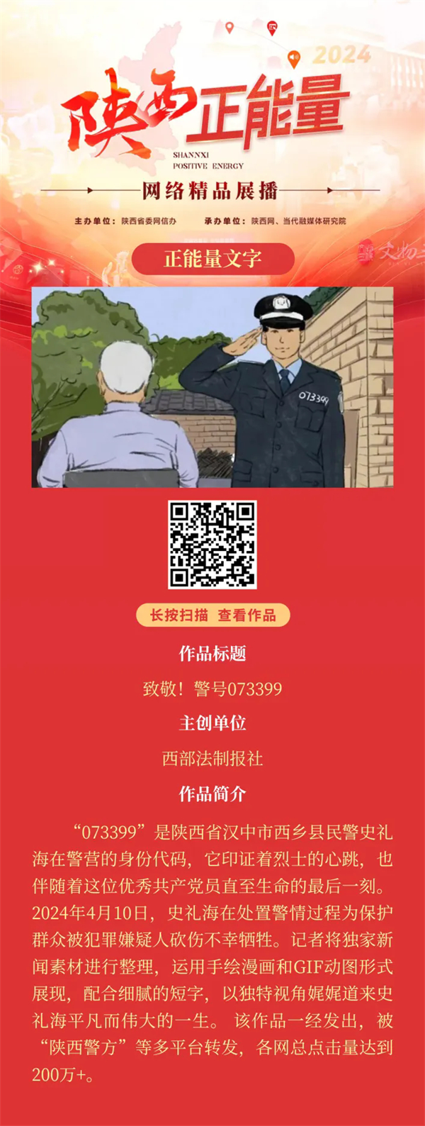 2024陜西正能量網(wǎng)絡(luò)精品展播丨正能量文字:致敬!警號(hào)073399