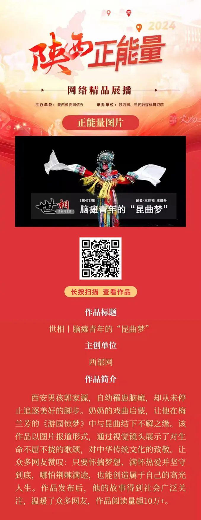 2024陜西正能量網(wǎng)絡(luò)精品展播丨正能量圖片:腦癱青年的“昆曲夢(mèng)”