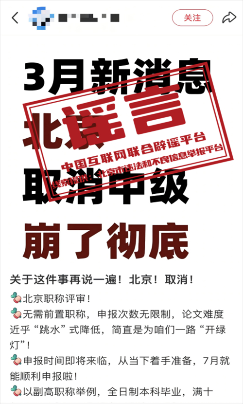 辟謠:“北京取消中級(jí)職稱(chēng)”系謠言