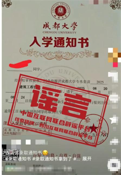 教育部多次提醒,部分機(jī)構(gòu)和個(gè)人打著普通高等學(xué)歷教育幌子,實(shí)際卻為自考助學(xué)、網(wǎng)絡(luò)教育等其他教育形式,或進(jìn)行虛假宣傳。如未通過高考招生錄取獲得正式通知書,無法注冊(cè)普通高校正式學(xué)籍,也無法取得普通高等學(xué)校學(xué)歷證書?忌凹议L(zhǎng)應(yīng)通過正規(guī)渠道核驗(yàn)錄取信息,嚴(yán)格保護(hù)個(gè)人信息,防止被不法分子利用。(來源:四川互聯(lián)網(wǎng)舉報(bào)辟謠平臺(tái)、成都網(wǎng)絡(luò)辟謠)