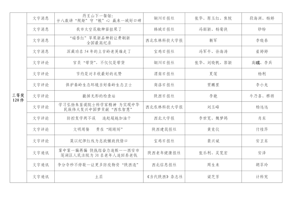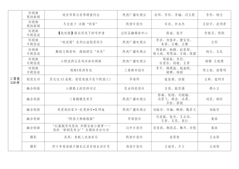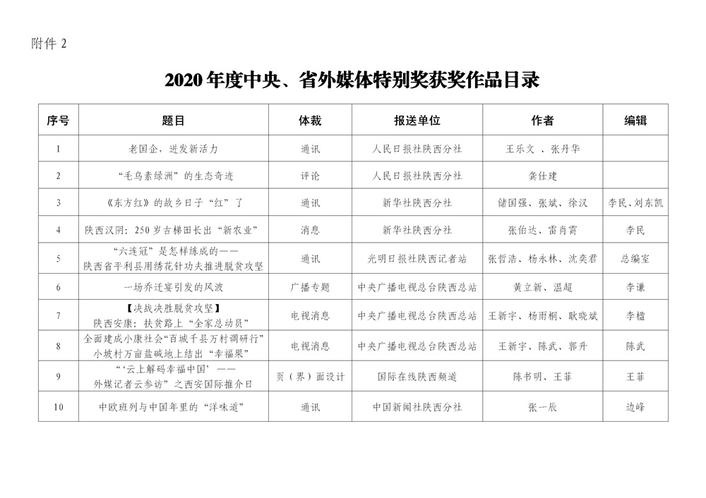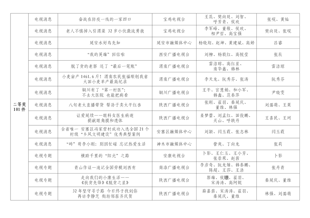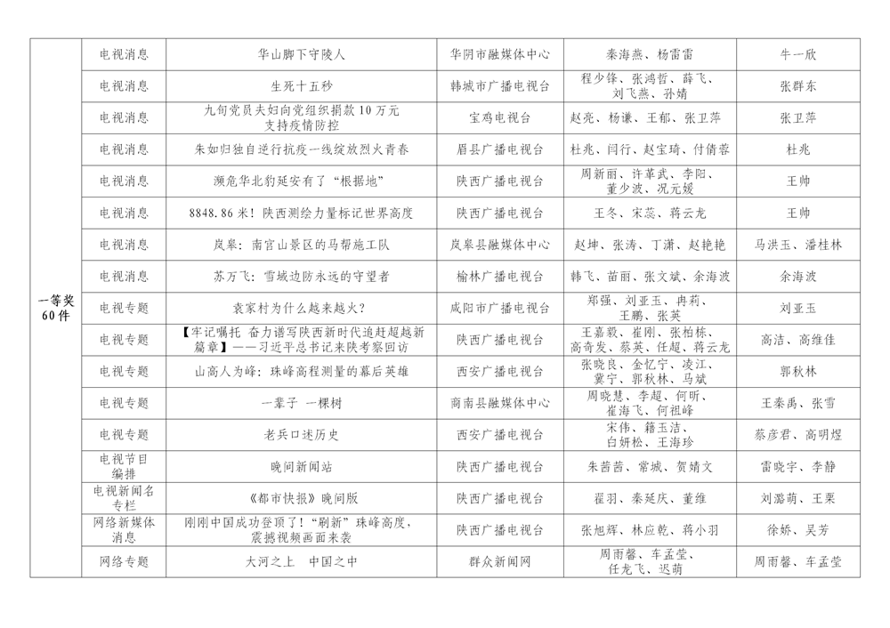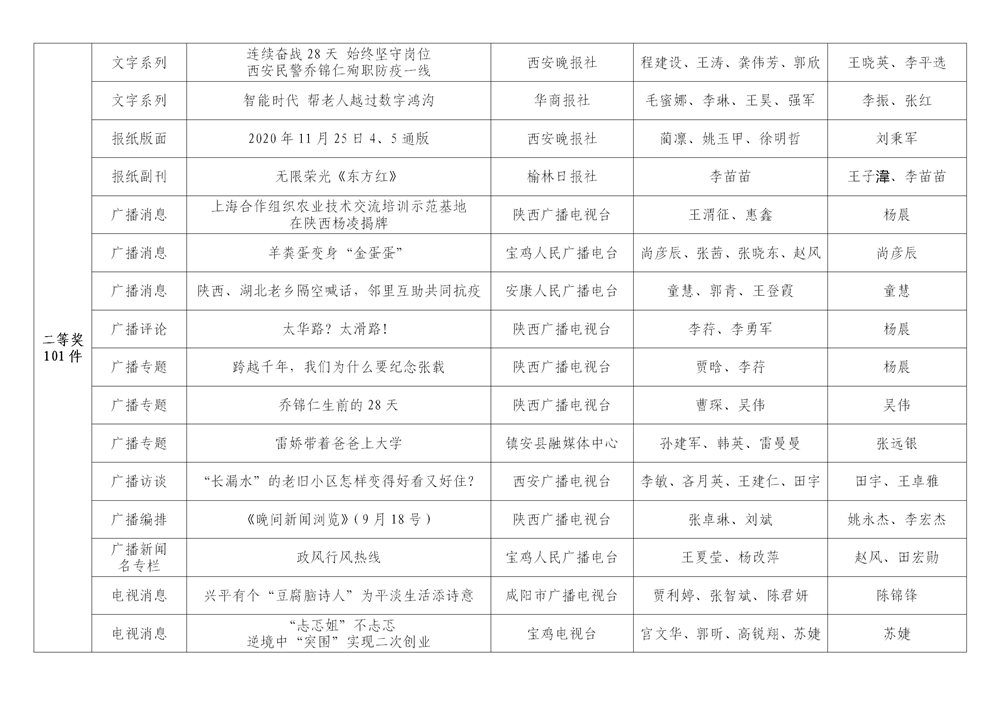 7月6日,陜西省新聞工作者協(xié)會(huì)公布了2020年度陜西新聞獎(jiǎng)、陜西省優(yōu)秀新聞工作者評(píng)選結(jié)果,最終評(píng)定2020年度陜西新聞獎(jiǎng)獲獎(jiǎng)作品281件,其中一等獎(jiǎng)作品60件、二等獎(jiǎng)作品101件、三等獎(jiǎng)作品120件;10件作品獲2020年度陜西新聞獎(jiǎng)“中央、省外媒體特別獎(jiǎng)”;12名新聞工作者獲得陜西省優(yōu)秀新聞工作者稱(chēng)號(hào)。Ynz安康新聞網(wǎng)