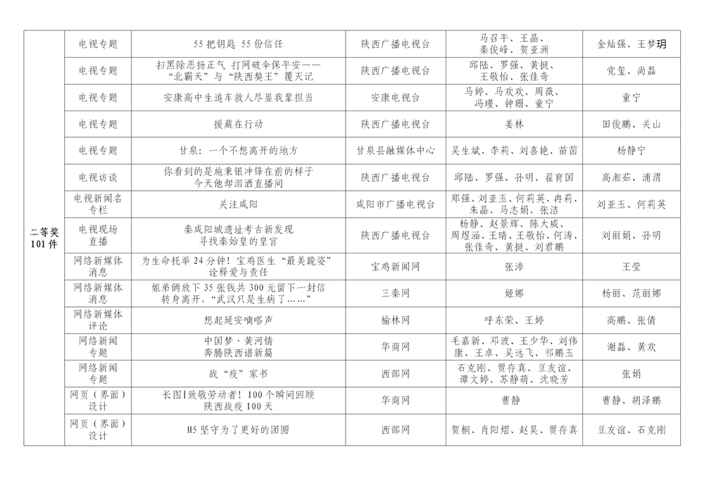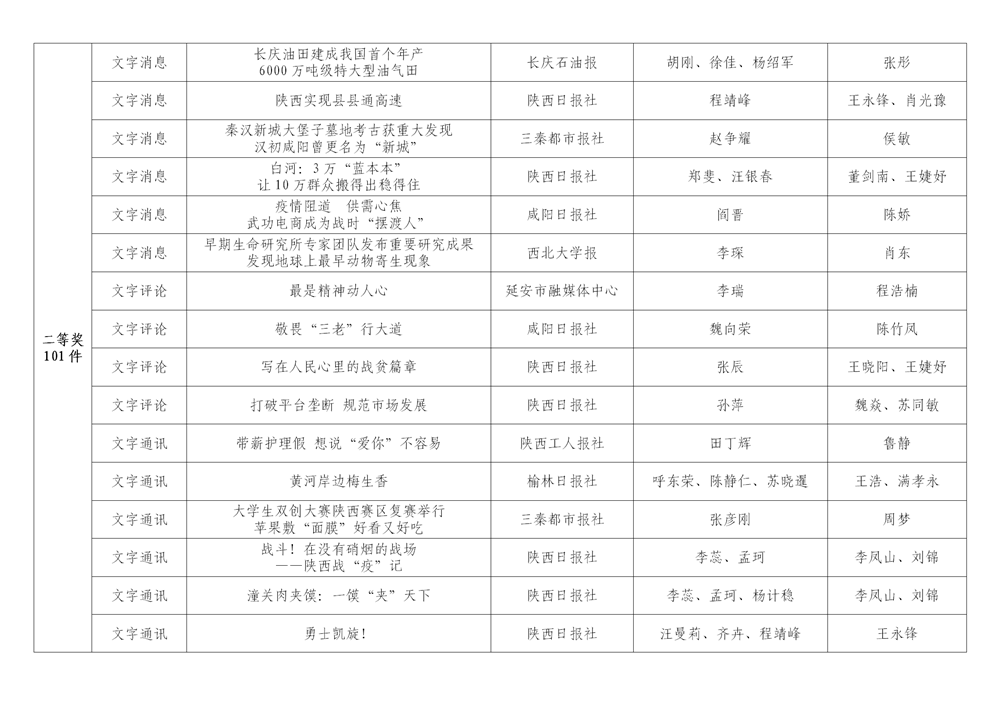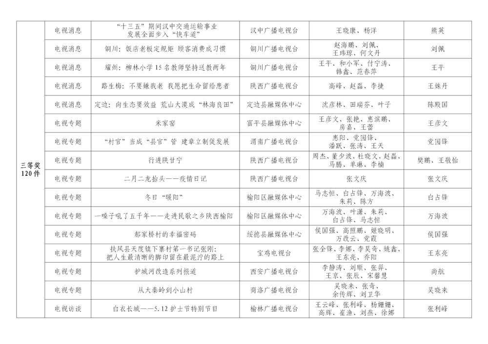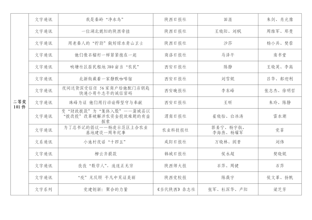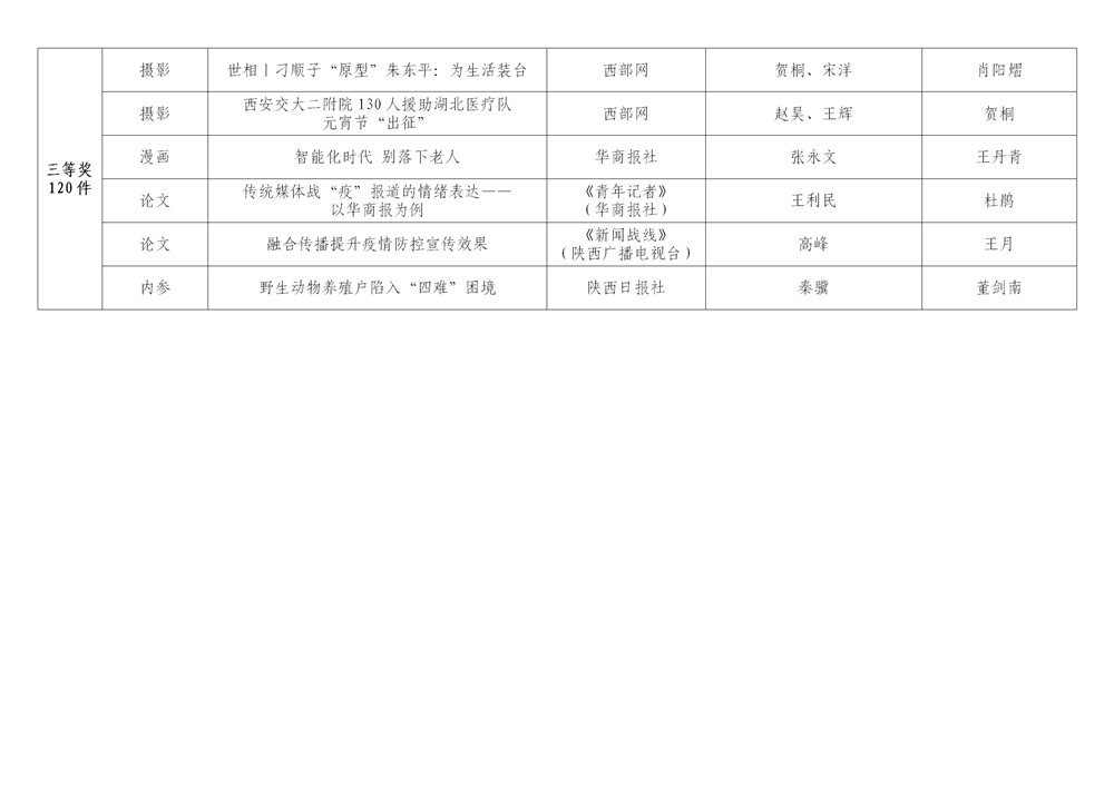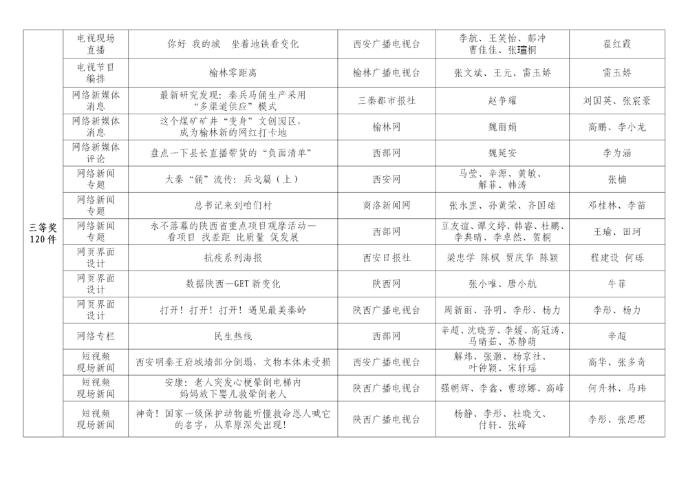 7月6日,陜西省新聞工作者協(xié)會(huì)公布了2020年度陜西新聞獎(jiǎng)、陜西省優(yōu)秀新聞工作者評(píng)選結(jié)果,最終評(píng)定2020年度陜西新聞獎(jiǎng)獲獎(jiǎng)作品281件,其中一等獎(jiǎng)作品60件、二等獎(jiǎng)作品101件、三等獎(jiǎng)作品120件;10件作品獲2020年度陜西新聞獎(jiǎng)“中央、省外媒體特別獎(jiǎng)”;12名新聞工作者獲得陜西省優(yōu)秀新聞工作者稱(chēng)號(hào)。Ynz安康新聞網(wǎng)