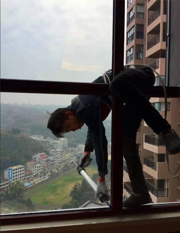 作品簡介:蜘蛛人 2017年12月27日,一個寒冷的冬季里,窗戶玻璃安裝工人身懸七十多米高的窗戶外面封膠,體現(xiàn)了勞動者的勤勞、智慧與膽量的獨(dú)特魅力!fAU安康新聞網(wǎng)