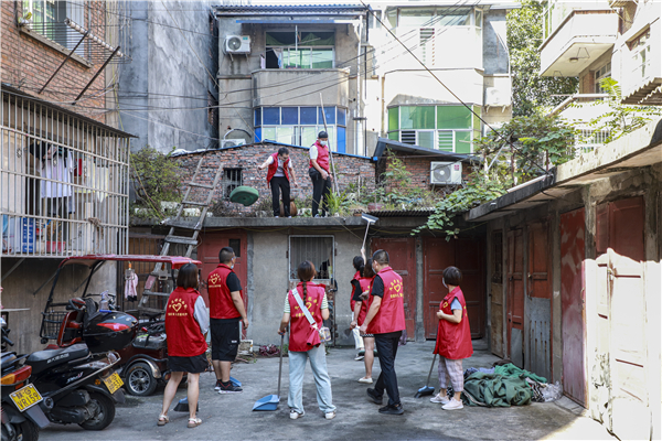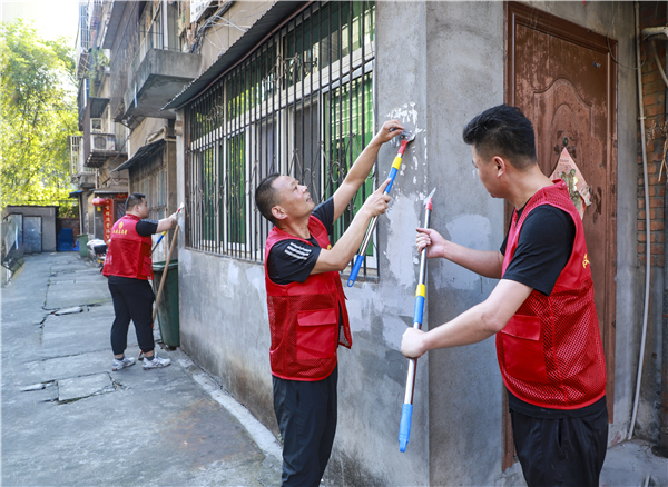 2022年7月21日早上,靜寧社區(qū)領(lǐng)導(dǎo)、工作人員及志愿者;市民政局、市兒童褔?yán);市人壽公司等單位都派出多名工作人員,在社區(qū)轄內(nèi)靜寧小區(qū),幫助廢舊垃圾、廣告的清理。v4E安康新聞網(wǎng)