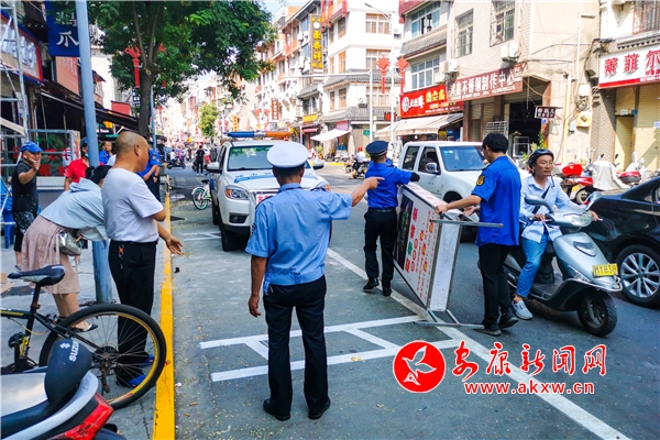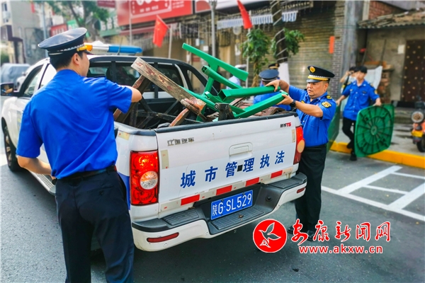 8月2日,漢濱區(qū)老城街道聯(lián)合、城管、公安、交警、市場(chǎng)監(jiān)督管理局等部門在東正街開展亂停亂放、出店經(jīng)營、環(huán)境衛(wèi)生清理整治。(張昊 汪海玉)uXv安康新聞網(wǎng)