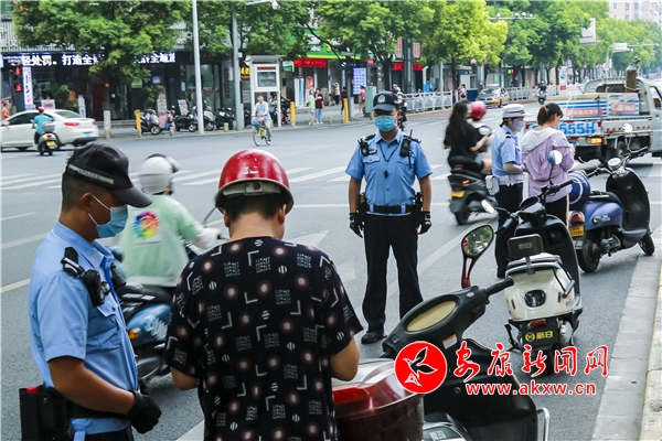 8 月1 日,交警中隊(duì)派員在城區(qū)十字路口,檢查違法違紀(jì)車(chē)輛。(李春江)
