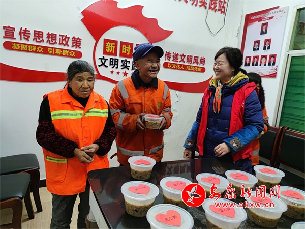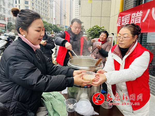 ▲ 漢陰縣城關(guān)鎮(zhèn)李家臺(tái)社區(qū)食堂開(kāi)展“暖暖臘八節(jié) 濃濃社區(qū)情”免費(fèi)送臘八粥活動(dòng)。王建霞 攝