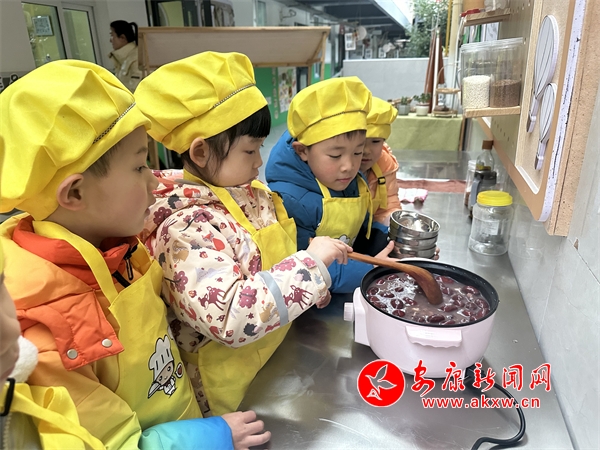 ▲ 石泉縣第二幼兒園開(kāi)展“童心知民俗 開(kāi)心過(guò)臘八”主題活動(dòng),孩子們慢慢熬制香甜可口的臘八粥,將傳統(tǒng)文化與勞動(dòng)教育相融合。陳遠(yuǎn)熙 攝