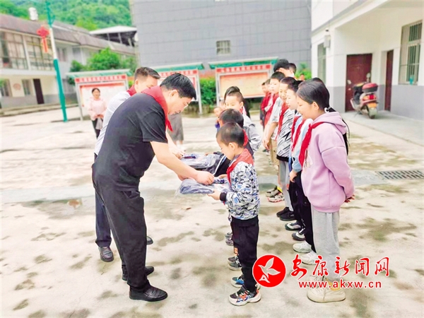 平利縣審計局聯(lián)合興隆鎮(zhèn)蒙溪街小學(xué)開展“六一”送關(guān)愛活動,為蒙溪街小學(xué)全體學(xué)生送去夏秋季校服。彭書梅 攝