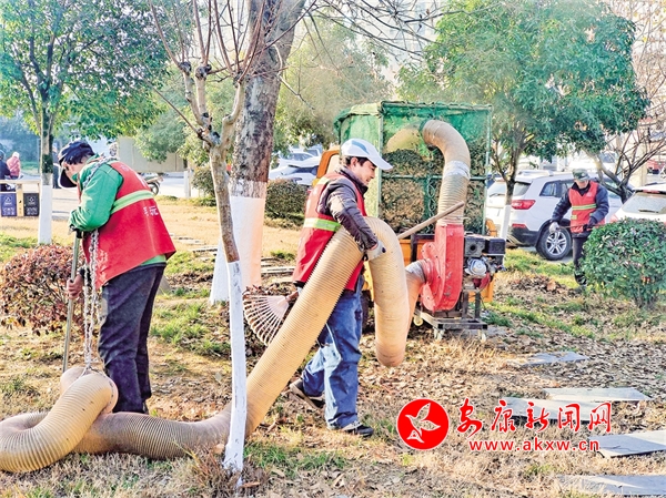 為迎接新年,2024年12月30日下午,漢濱環(huán)衛(wèi)工人在街心公園清理落葉雜草,扮靚城市。尚玉寶 攝TkB安康新聞網(wǎng)