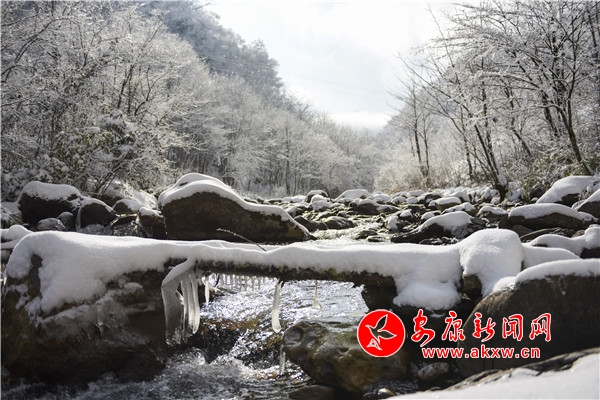 在嵐皋,有一種景總也看不夠,那就是神河源的雪景。神河源的雪景有著女子般的清奇秀麗,那銀裝素裹、玉樹瓊花的景觀似夢(mèng)似幻,讓人流連忘返。李輝苗/文圖DNE安康新聞網(wǎng)