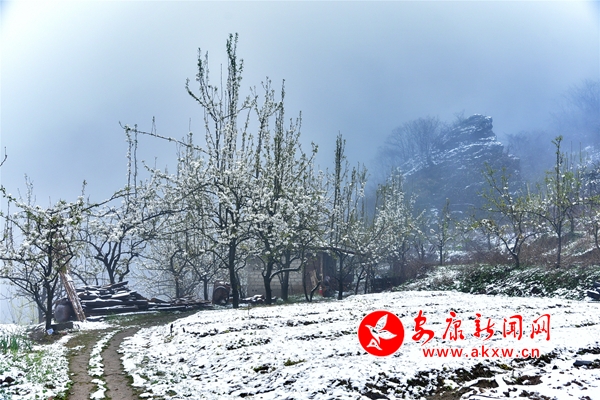日前,一場洋洋灑灑的春雪,讓平利縣城關鎮(zhèn)龍頭村太平寨展現(xiàn)出春雪壓梨花的美景。據悉,太平寨有梨樹十余畝,與絞股藍栽植套種,年產酥梨萬余斤。(王韜 攝)wsA安康新聞網