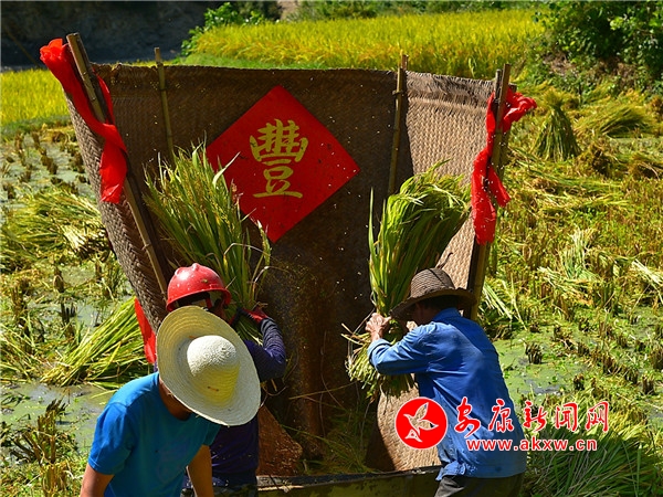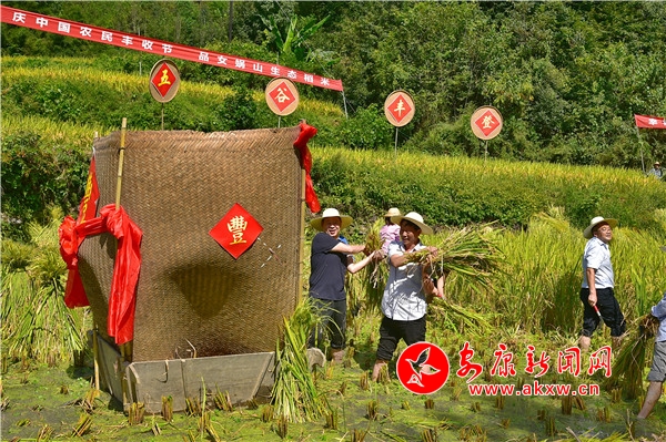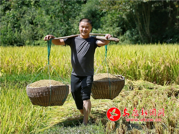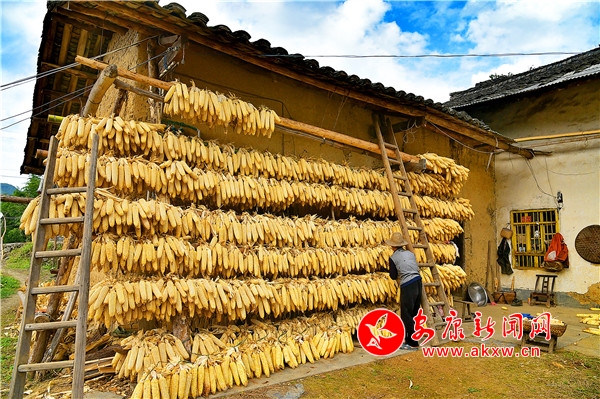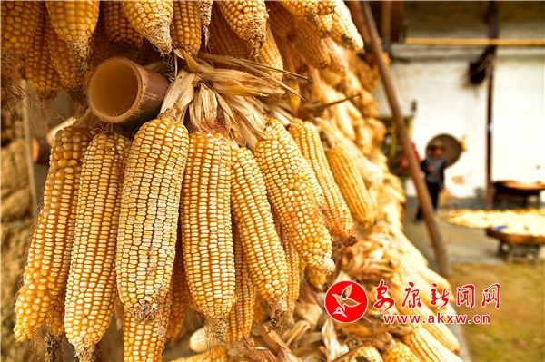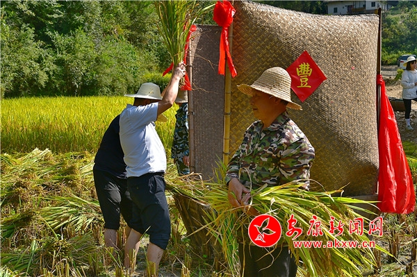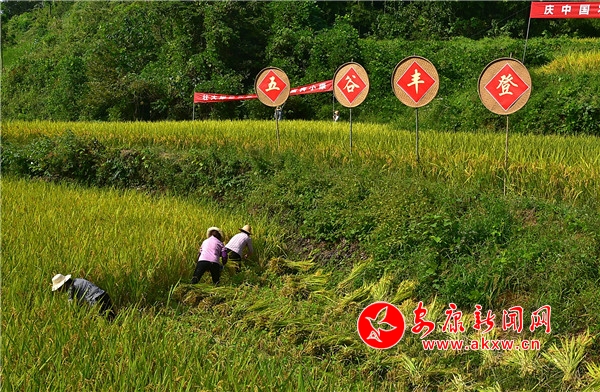 秋日,平利鄉(xiāng)村田園間梯田層層,稻浪滾滾,飽滿的谷穗壓彎了稻桿,放眼望去,遍野鋪金,空氣中也彌漫著淡淡的稻香。在西河鎮(zhèn)女媧山村三里溝原生態(tài)水稻田里,人們按照傳統(tǒng)的習俗和方式收割水稻,數(shù)十位村民手持鐮刀一字排開,迅速揮舞著手中的鐮刀,將金黃的稻穗割下并整齊的堆放。打谷人則分為兩組,兩人一組,交叉替換的將手中的稻秧在拌桶里反復甩打脫粒,拌谷聲“嘭呲嘭呲”有節(jié)奏地作響,聲勢頗為壯觀。與此同時,廣佛鎮(zhèn)松河村李家坡的農(nóng)家小院已堆滿收回來的苞谷,郭老漢正在將苞谷殼撕開,編成串掛在屋檐下的竹竿上晾曬,金黃的苞谷棒子整齊排列,儼然一幅鄉(xiāng)村小院秋實圖。