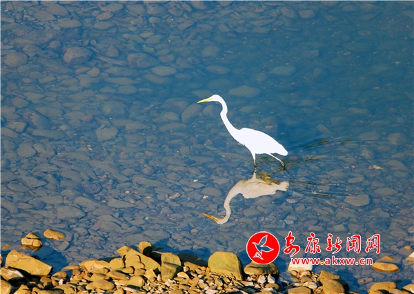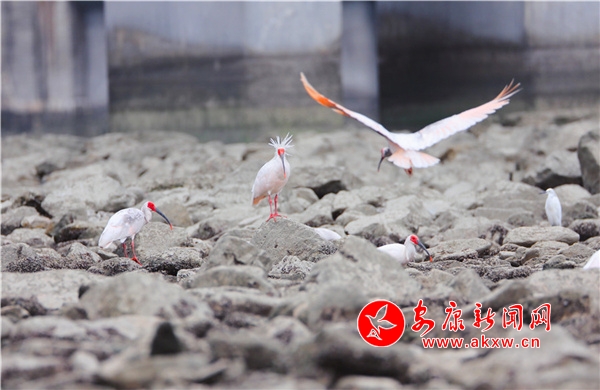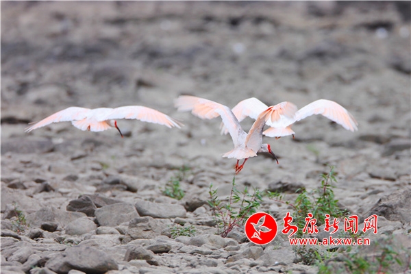 連日來,石泉縣城漢江邊的一處處河水淺灘,迎來大量朱鹮、白鷺、蒼鷺等水鳥覓食,它們時而展翅翱翔,時而嬉水歡舞,享受大自然綠色生態(tài)帶來的愜意。(圖文/許兵)uYa安康新聞網(wǎng)