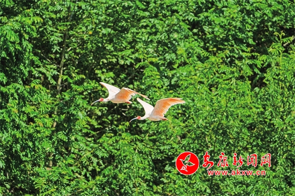 日前,在漢陰縣城關(guān)鎮(zhèn)的一處山水間,最多時有近20多只朱鹮棲息在2棵樹枝上,而且絕大多數(shù)為今年的新生代,種群在不斷擴大,說明漢陰的生態(tài)已經(jīng)滿足朱鹮的繁衍生息條件。同時需要提供更多的保護濕地、河流為它們提供覓食、棲息之處。相信在不久的將來,漢陰的山是金疙瘩,水是銀浪花,鳥是紅寶石。 wQH安康新聞網(wǎng)