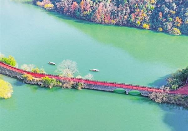 該景區(qū)有遠觀景點織女石、鳥語花香玉興島、愛情主題金螺島、休閑勝地翠屏島等三島一遠觀景點。以游船聯(lián)絡水上交通,“行船向三島,鷗鷺共遠近”,冬日里的瀛湖更是給游客展現(xiàn)出一幅浪漫、詩意、氤氳的唯美畫卷。(李成寶 文/圖)