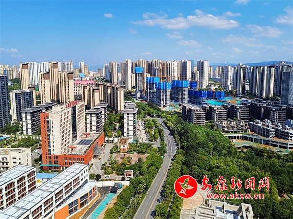 近年來(lái),通過(guò)不斷建設(shè)發(fā)展,安康高新區(qū)城市面貌日新月異。凌空俯瞰,幢幢高樓在藍(lán)天白云映襯下散發(fā)出濃郁的現(xiàn)代氣息。(通訊員 趙波) bks安康新聞網(wǎng)