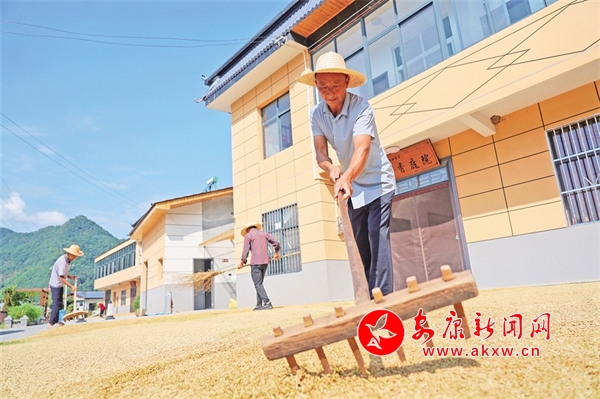 嵐皋縣南宮山鎮(zhèn)桂花村村民利用晴好天氣晾曬谷物。張鑫 攝