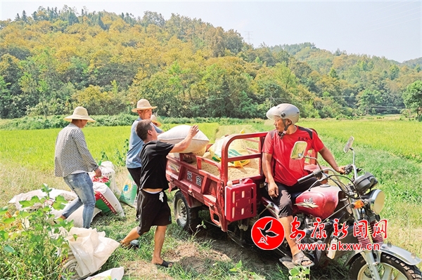 連日來,高溫天氣持續(xù),漢濱區(qū)吉河鎮(zhèn)吉河壩社區(qū)大片水稻已經(jīng)成熟,農(nóng)戶搶抓晴好天氣開鐮收割,一派繁忙的豐收景象。該區(qū)40萬畝秋糧作物開鐮收獲以來,農(nóng)業(yè)農(nóng)村部門先后組織調(diào)運(yùn)2000余臺(tái)(套)收割、脫粒等農(nóng)機(jī)參與秋收工作。李勝福 攝