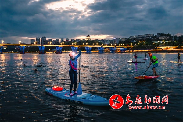 DUB安康新聞網(wǎng) 市民在安康湖玩漿板 薛勤學(xué) 攝DUB安康新聞網(wǎng)