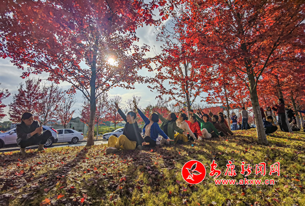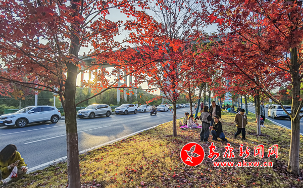 安康富強飛機場大道的紅葉進(jìn)入紅葉最佳觀賞期,每天有數(shù)百人在這里觀賞,拍照和打卡,留下紅葉的美好瞬間。(圖文:陳德模)