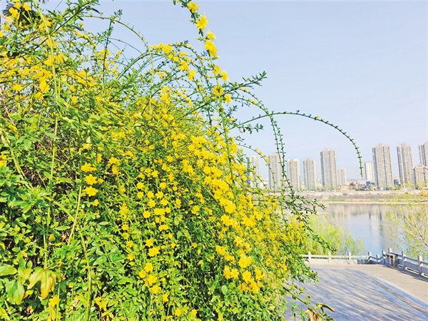 安康中心城區(qū)江邊步道旁的迎春綻放送香來te6安康新聞網(wǎng)