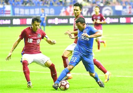 這樣一個(gè)幾近全華班的陣容,讓申花在比賽開始階段比較被動(dòng),特別是巴索戈對申花形成了很大的威脅。不過,隨著比賽的進(jìn)行,申花慢慢適應(yīng)了河南建業(yè)的打法,并在中場休息前率先打入一球。