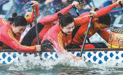 重慶隊在女子22人龍舟200米直道比賽中。 |