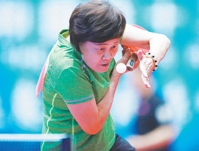 江蘇選手周新寧在女子單打60歲以上組比賽中。 |
