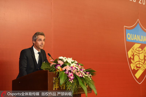 人民網(wǎng)天津11月6日電(記者胡雪蓉) 11月6日,天津權(quán)健隊(duì)在天津召開(kāi)賽季總結(jié)大會(huì)暨歡送迎新會(huì)。俱樂(lè)部正式宣布葡萄牙人保羅·索薩接替卡納瓦羅,成為球隊(duì)新任主教練。索薩表示,之所以接手權(quán)健是被俱樂(lè)部的宏偉目標(biāo)所打動(dòng),面對(duì)卡納瓦羅率隊(duì)取得的出色成績(jī),自己并沒(méi)有壓力。