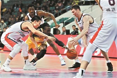 廣州隊(duì)與對(duì)手激烈拼搶。 廣州日?qǐng)?bào)全媒體記者 廖藝 攝